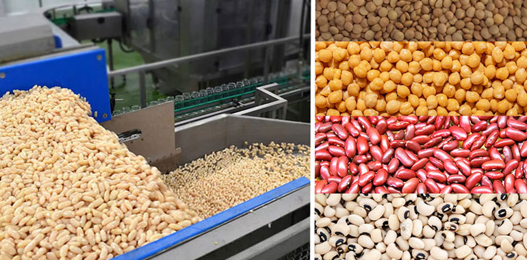 Next, optical color sorters are used to eliminate discolored or defective pulses, further enhancing purity and overall quality. For selected varieties, a light thermal treatment (blanching) is applied to reduce microbial load, deactivate enzymes, and stabilize texture.